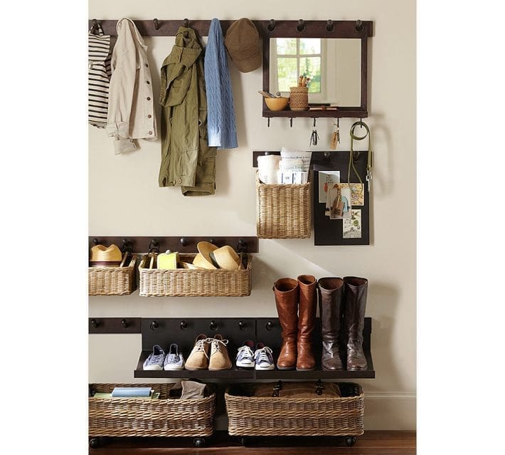 An entrance without a closet can be very challenging, but adding a bench and baskets will create the seating and storage for the small items you need.