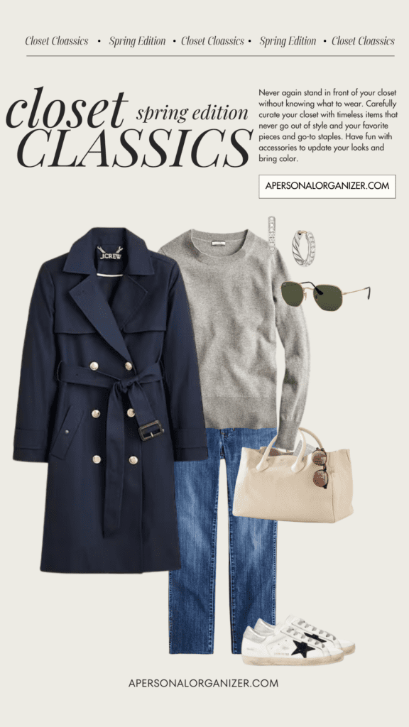 Incorporating timeless staples like classic denim, a white shirt, a versatile blazer, statement accessories, trenchcoats, and stylish footwear into your wardrobe will create a timeless and organized style, simplify your daily outfit choices, and elevate your style game.