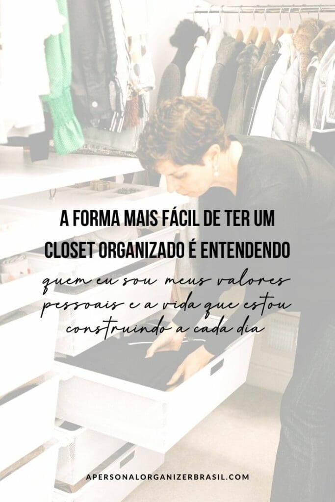 Eu acredito que a forma mais fácil de ter um closet organizado é entendendo quem eu sou, meus valores pessoais e a vida que estou construindo a cada dia.