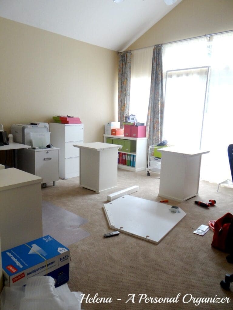 My husband and I had separate home offices in our previous homes, and in this house, we decided to use a large room and combine our offices.