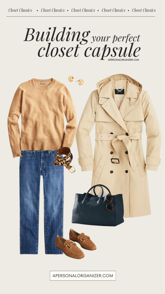 I created the board below to give you an example of a simple wardrobe that I’d wear from Fall through winter.