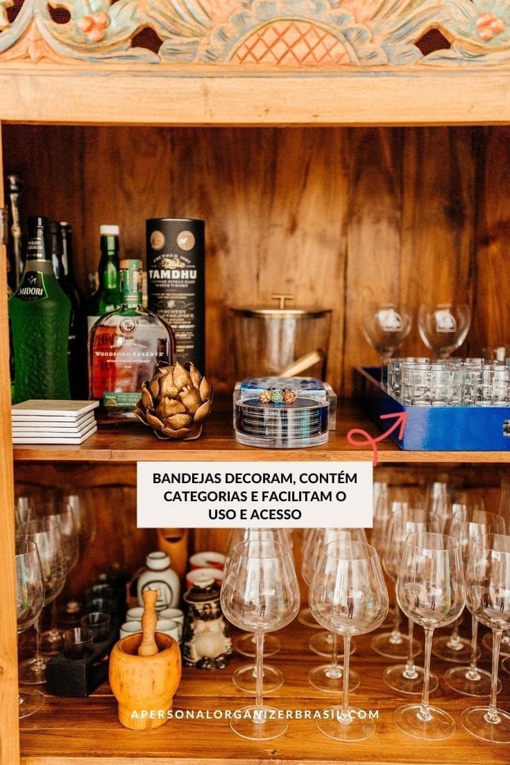 Já os copos e taças usados em festas podem morar em um armário na sala, junto com as bebidas, criando um bar, onde congregamos com convidados antes das refeições.