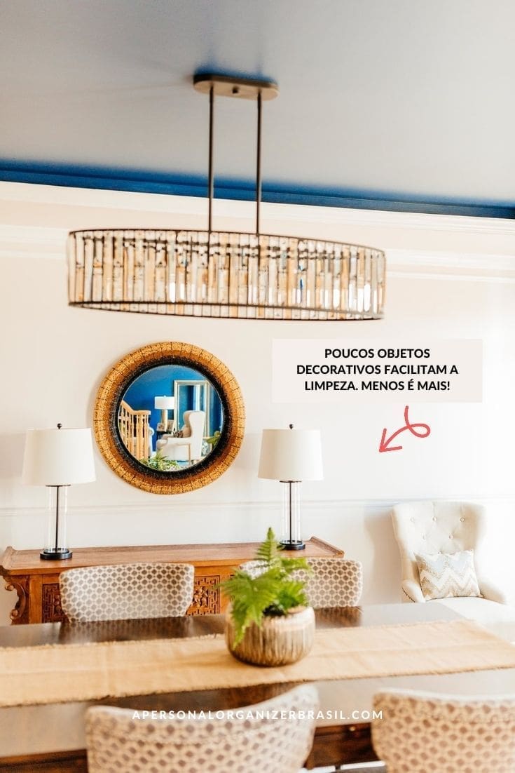 Agora, olhando cada objeto, identifique quais são os itens que irão “viver” aqui? Louça, copos, bar, objetos de decoração, toalhas de mesa? Tem alguma coisa aqui que não deveria ou faz mais sentido ter em outro lugar?